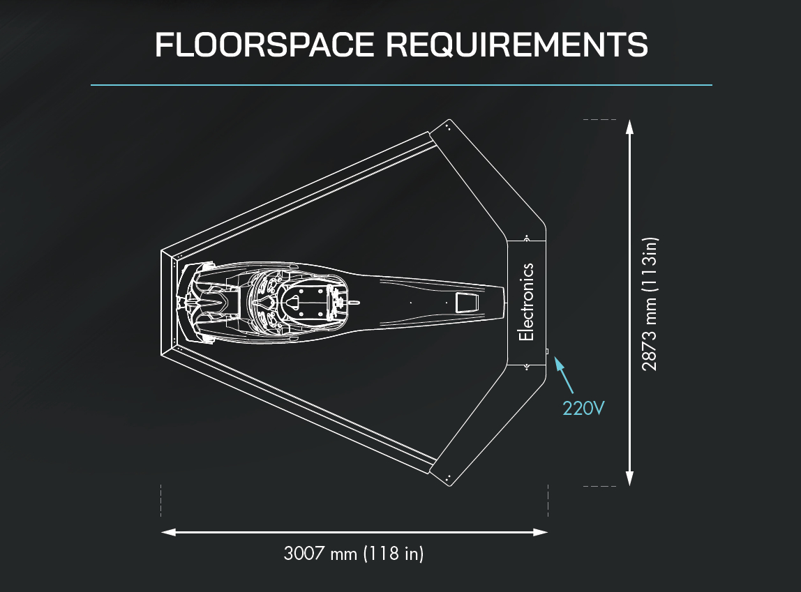 Dimensions (L x W x H) 3 x 3 x 1.4 m, external electronics rack